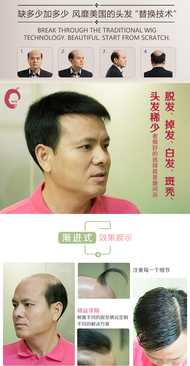 唐風(fēng)采假發(fā),專注于脫發(fā)患者帶來了新的希望;唐風(fēng)采是中國大陸引進(jìn)國外增發(fā)技術(shù)的大型連鎖機(jī)構(gòu),中國增發(fā)行業(yè)的