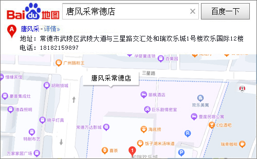 唐風(fēng)采常德店位于湖南省常德市武陵區(qū)武陵大道與三星路交匯處和瑞歡樂(lè)城1號(hào)樓歡樂(lè)國(guó)際12樓,周圍環(huán)境優(yōu)美,經(jīng)濟(jì)繁華,交通非常便利。